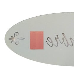 Cette plaque miroir se fixe à l'aide des pastilles double-face mises au dos de la plaque. Un film de protection sur le devant de la plaque miroir est à retirer délicatement avant la pose.