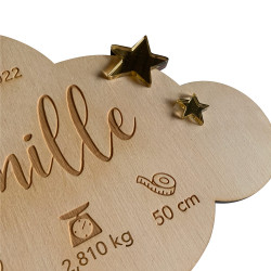 Pour célébrer l’arrivée d’un bébé, il faut un cadeau inoubliable. Exit les bodys, les coffrets de toilettes ou encore les ensembles qui seront vite oubliés dans la commode… Préférez un cadeau de naissance original, unique et intemporel ! Effectivement, la plaque naissance en bois est un souvenir de naissance qui se garde toute la vie ! Grâce à la personnalisation, indiquez la date de naissance de l’enfant, l’heure, son poids et sa taille. Avec ses détails en plexii miroir or, la décoration pour chambre bébé est élégante et raffinée. Sa lune dorée et ses étoiles apportent une touche de poésie au décor et s’accordent à tous les styles de décoration bébé.