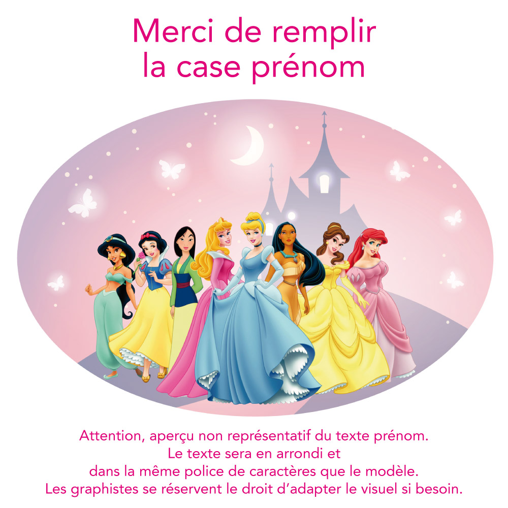 Votre petit trésor aime les princesses Dizney ? grâce ce sticker personnalisable, vous pourrez décorer la chambre de votre petite princesse.