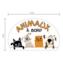Cet adhésif est compose de deux chiens et deux chats avec écrit "Animaux a bord".