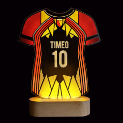 Lampe veilleuse en plexigglass transparent pour chambre d’enfant, personnalisable avec son prénom. Veilleuse lumineuse en forme de maillot de foot, pour une représentation graphique aux couleurs des clubs de foot français.